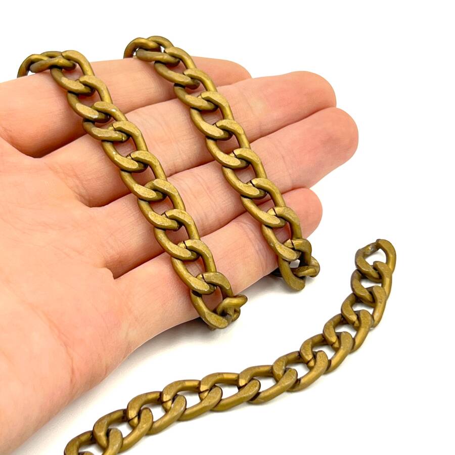 12x19 mm, ALÜMİNYUM ZİNCİR, ANTİK SARI RENK, 1. KALİTE KARARMAZ, TEL KALINLIĞI 2 mm, AZ140AS