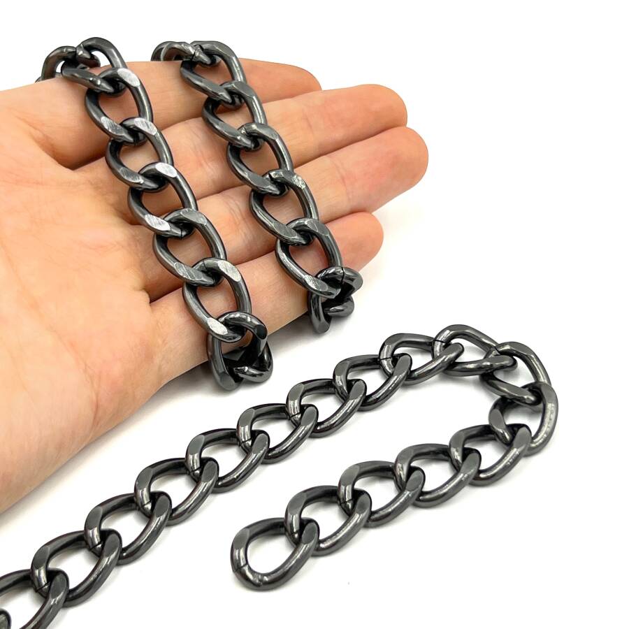 13x18 mm, ALÜMİNYUM ZİNCİR, SİYAH RENK, 1. KALİTE KARARMAZ, TEL KALINLIĞI 2 mm, AZ10Sİ