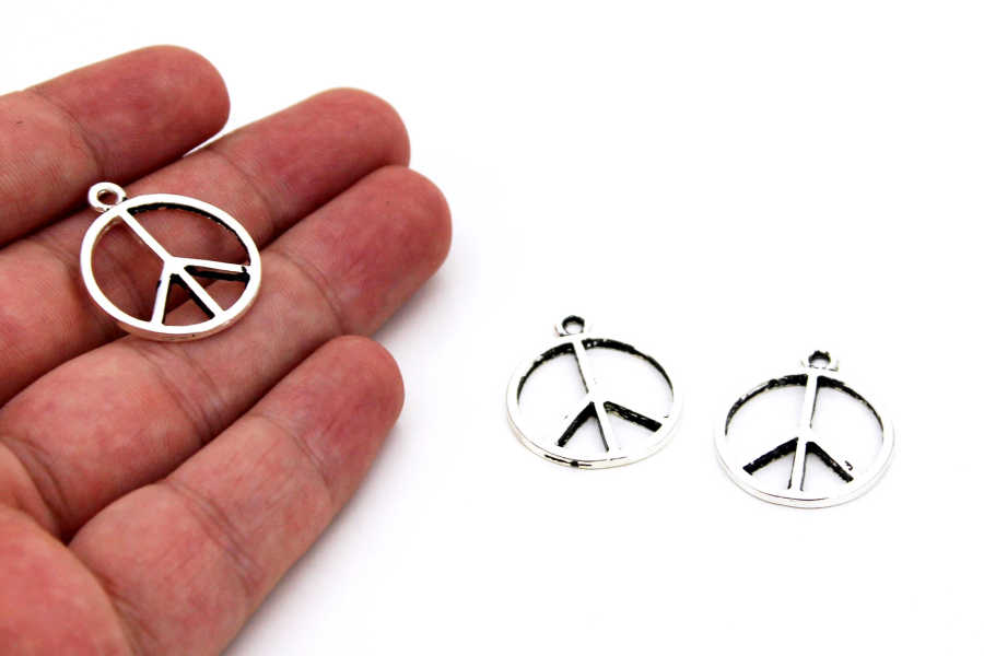 22 mm BARIŞ İŞARETİ DESENLİ SALLANTI ZAMAK DÖKÜM, BOYALI GÜMÜŞ RENK