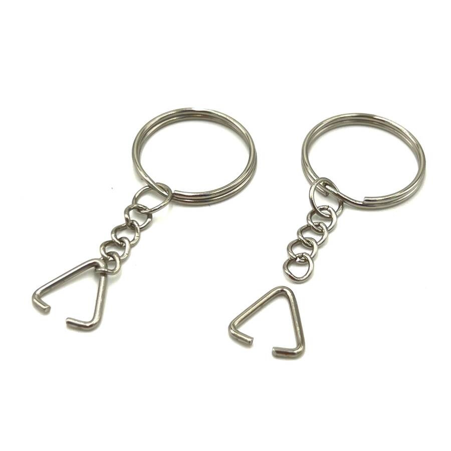 25 mm ZİNCİRLİ ANAHTARLIK HALKASI VE ÜÇGEN(1.5 mm) TAKIM HALİNDE NİKEL KAPLAMA