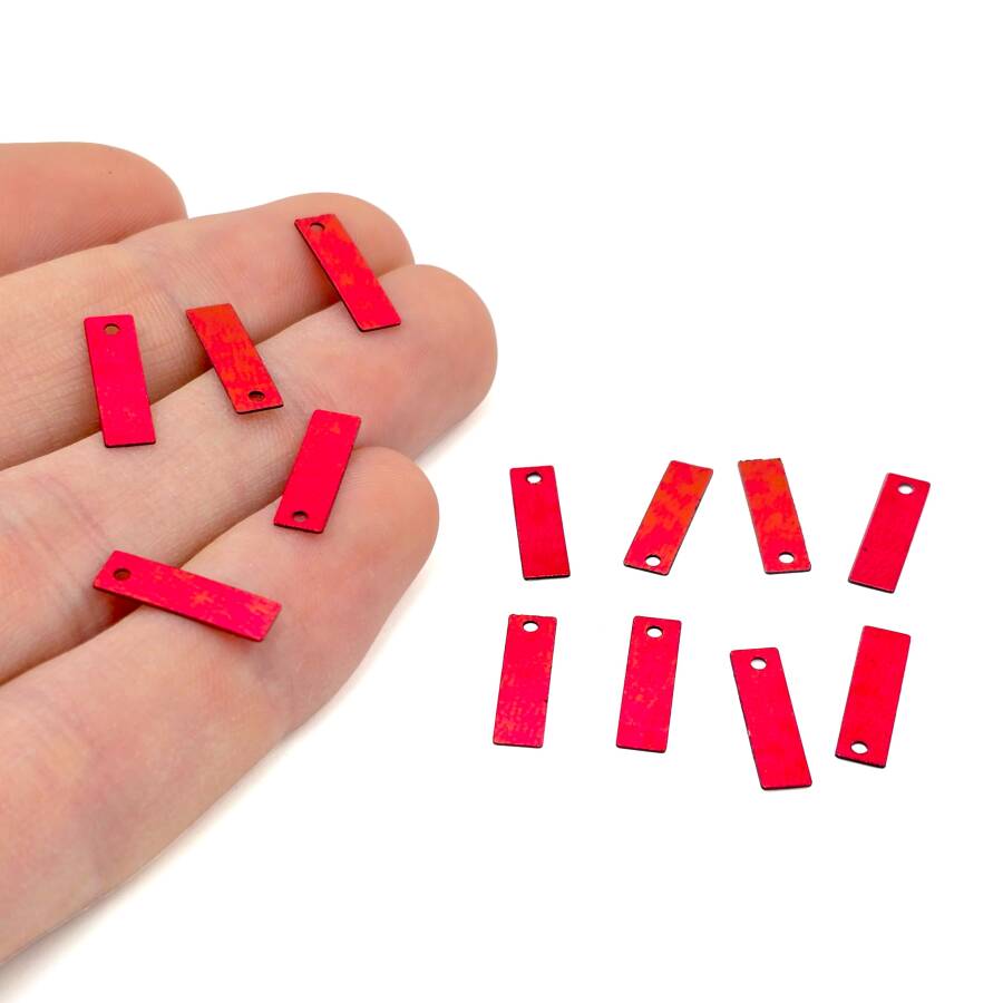 4x14 mm DİKDÖTGEN MODEL PLASTİK PUL PAYET, OYA PULU, NAKIŞ PULU, DÖKME PUL, KIRMIZI RENK