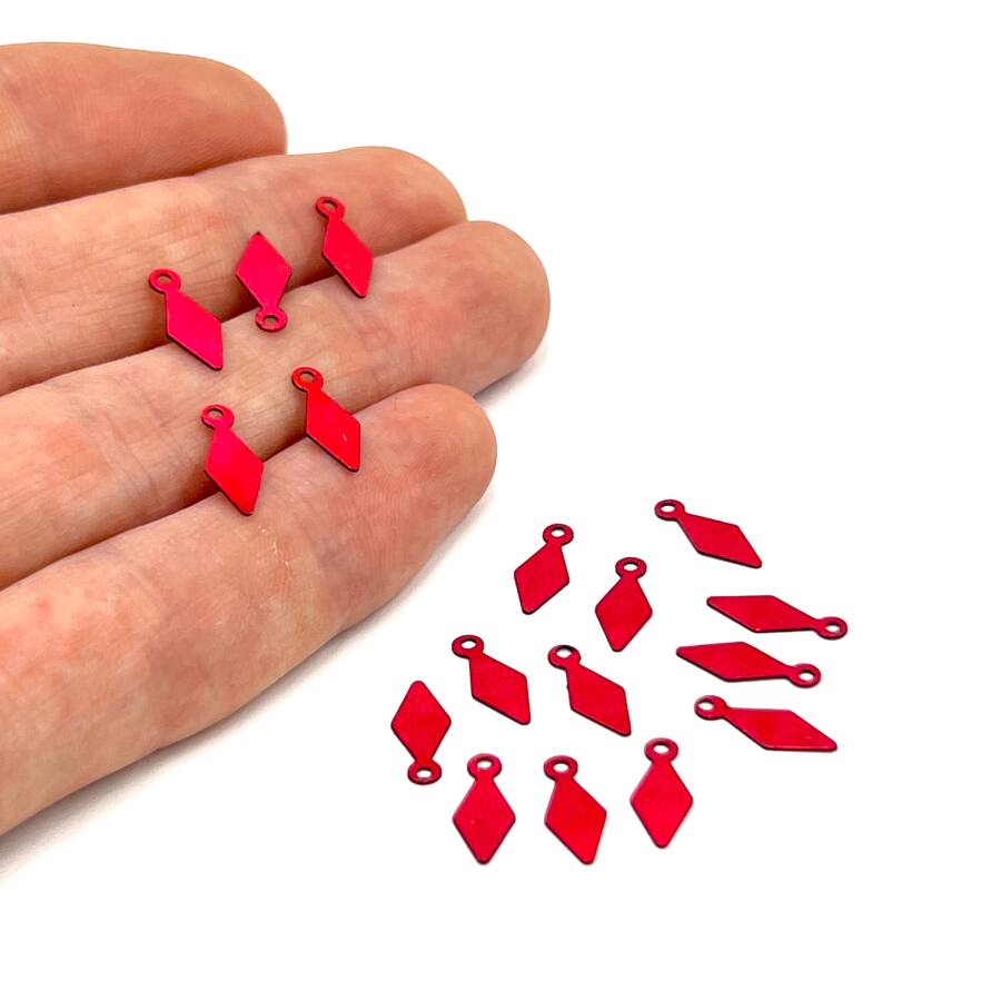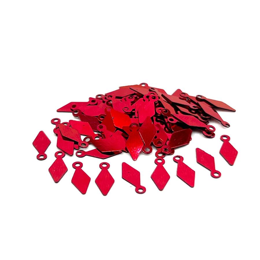 5x12 mm BAKLAVA DİLİMİ MODEL PLASTİK PUL PAYET, OYA PULU, NAKIŞ PULU, DÖKME PUL, KIRMIZI RENK