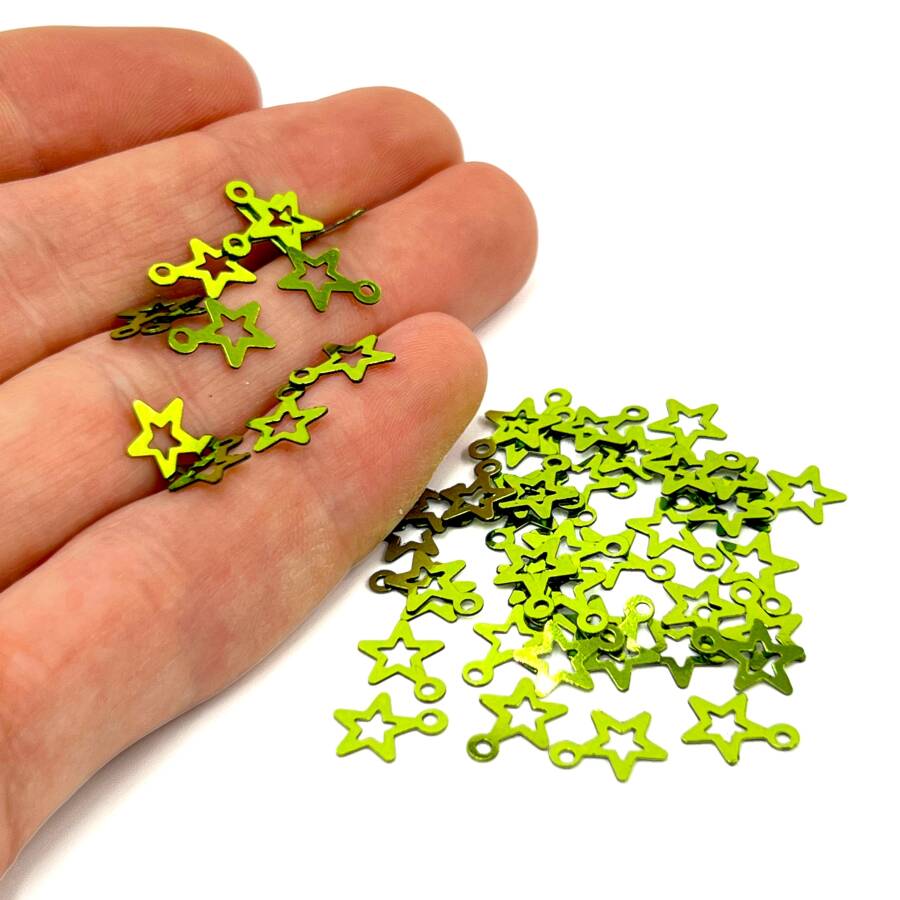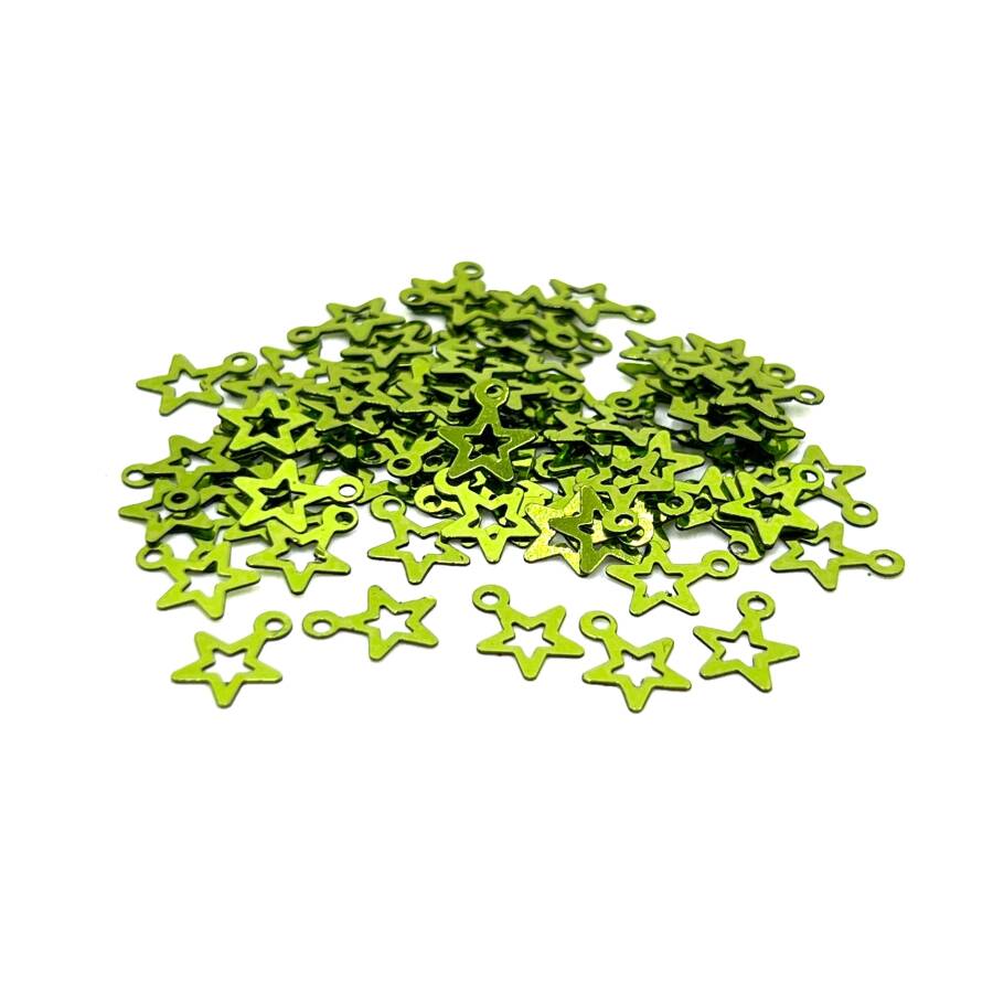 8x10 mm YILDIZ MODEL PLASTİK PUL PAYET, OYA PULU, NAKIŞ PULU, DÖKME PUL, AÇIK YEŞİL RENK