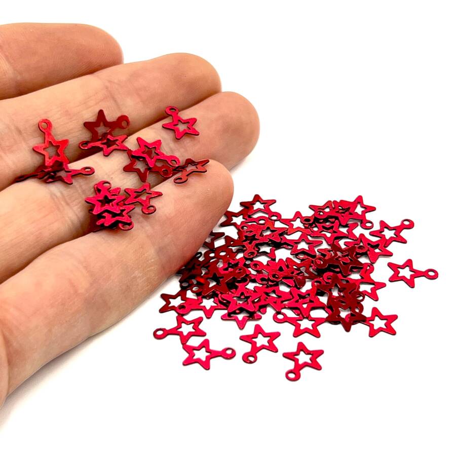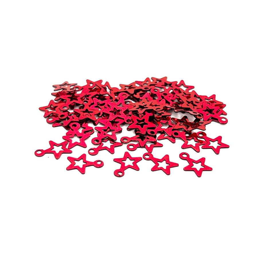 8x10 mm YILDIZ MODEL PLASTİK PUL PAYET, OYA PULU, NAKIŞ PULU, DÖKME PUL, KIRMIZI RENK