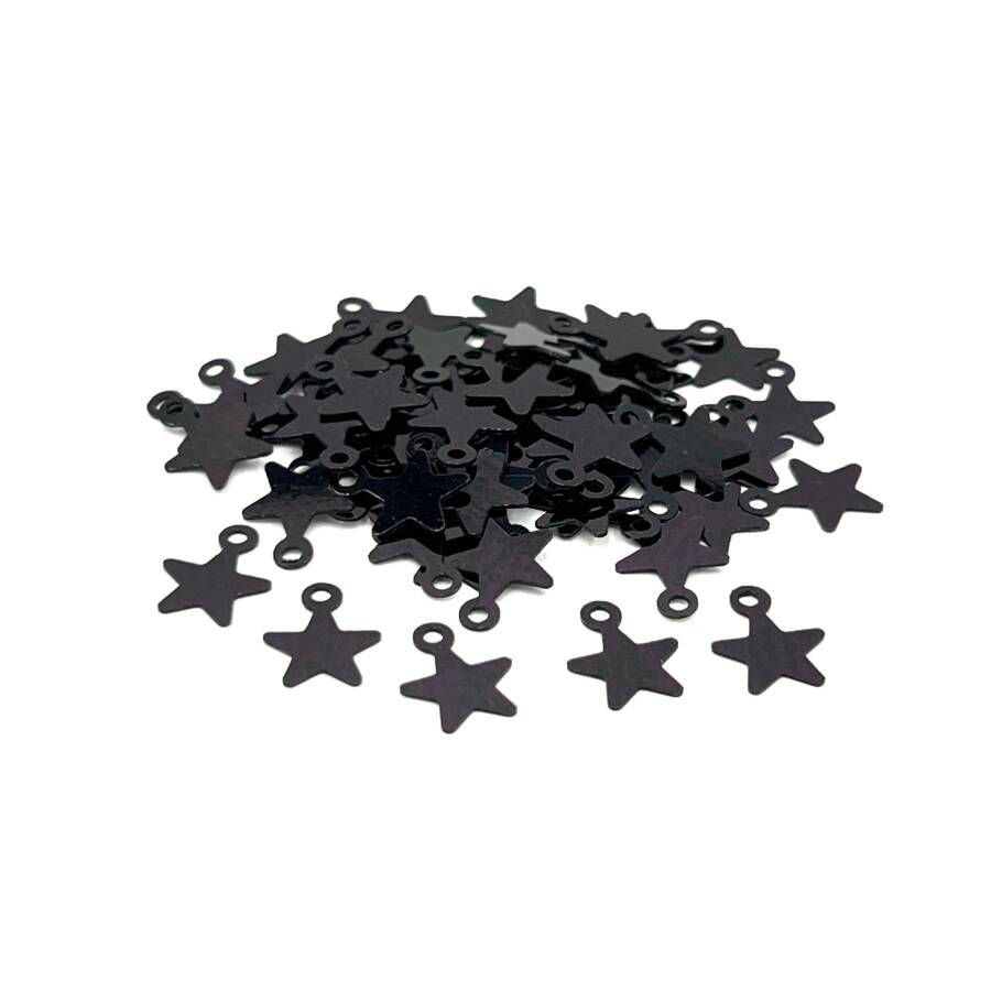 8x10 mm YILDIZ MODEL PLASTİK PUL PAYET, OYA PULU, NAKIŞ PULU, DÖKME PUL, SİYAH RENK