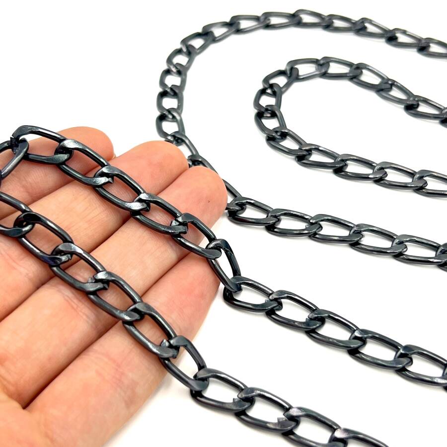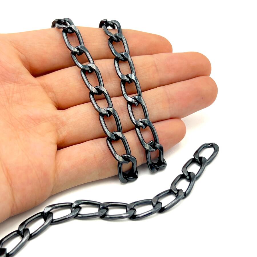 11x15 mm, ALÜMİNYUM ZİNCİR, SİYAH RENK, 1. KALİTE KARARMAZ, TEL KALINLIĞI 3 mm, AZ163Sİ