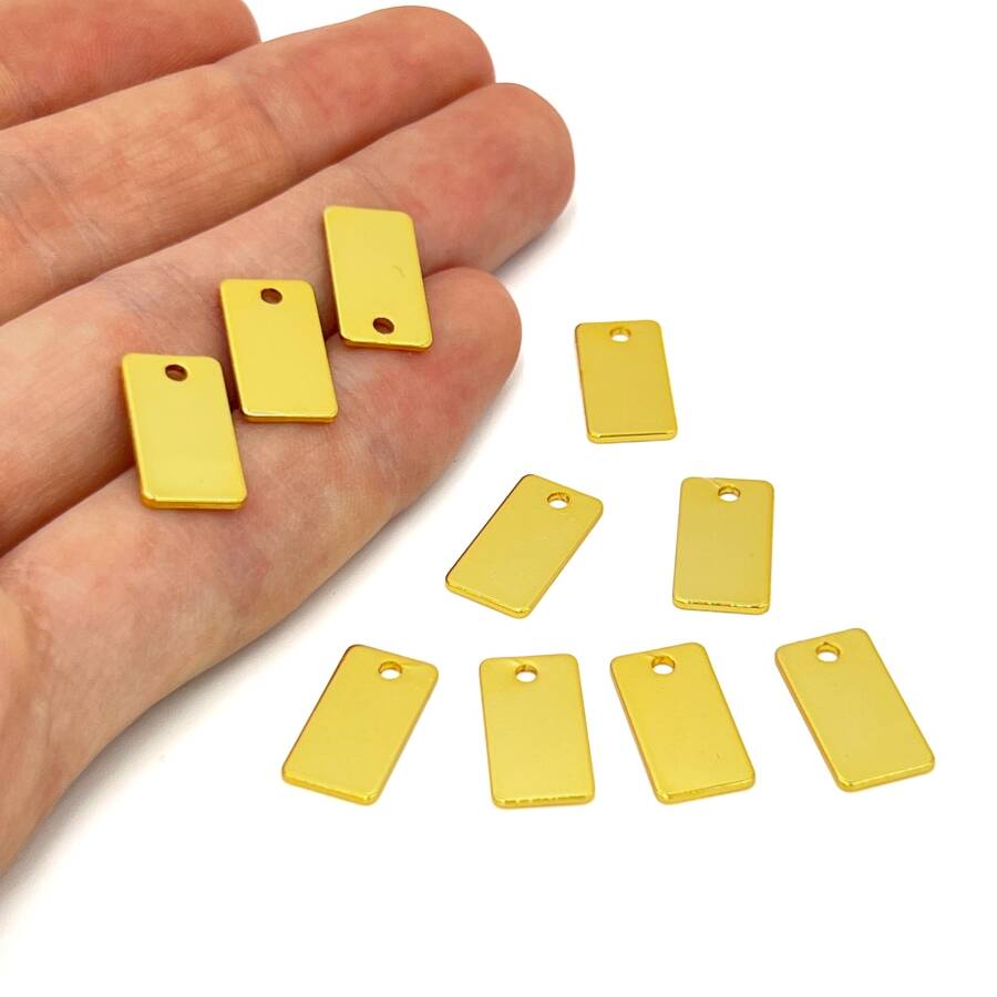 8x15 mm, DİKDÖRTGEN PUL, LAZER MARKALAMA PULU, PİRİNÇ MALZEME, LAK KAPLAMA, TEL KALINLIĞI 0.80 MM
