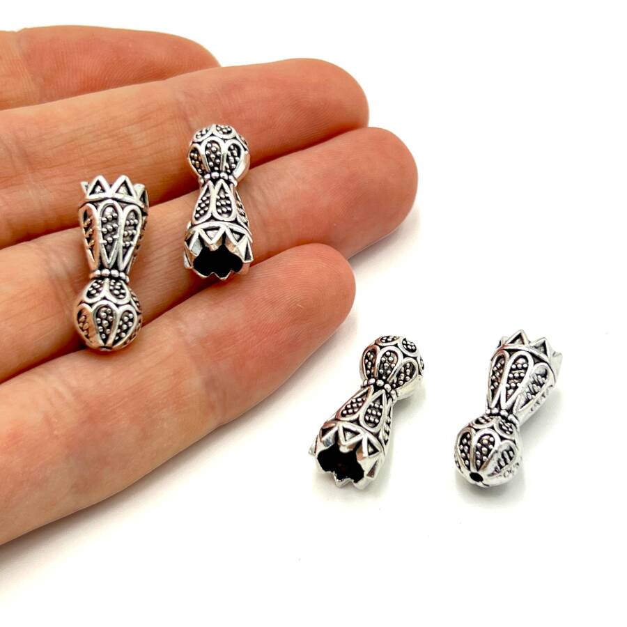 8x20 mm TESBİH İMAMESİ, ZAMAK DÖKÜM, BOYALI GÜMÜŞ KAPLAMA