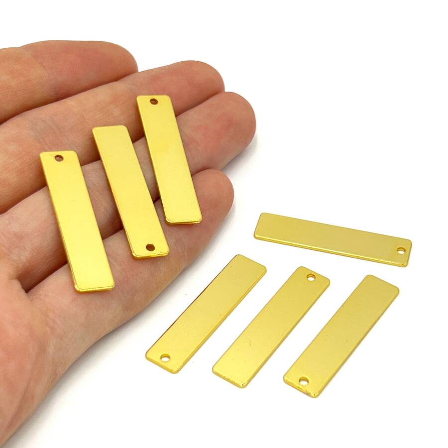 5x30 mm, DİKDÖRTGEN PUL, LAZER MARKALAMA PULU, PİRİNÇ MALZEME, LAK KAPLAMA, TEL KALINLIĞI 0.80 MM