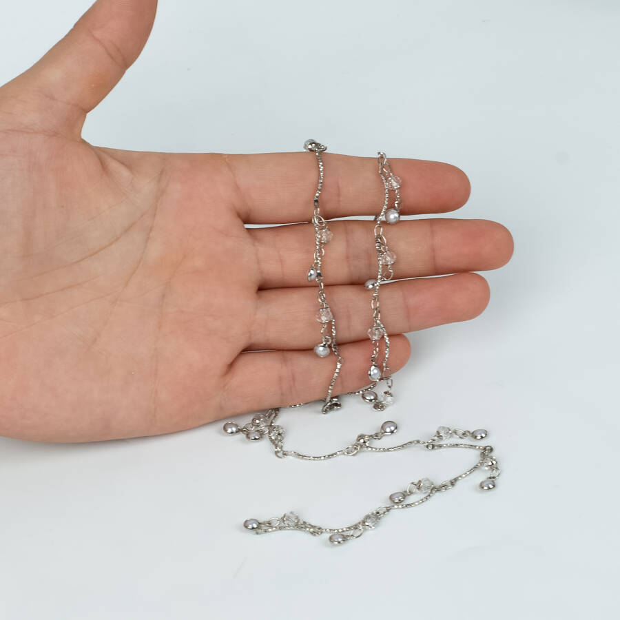 PEMBE TAŞLI ZİNCİR, PİRİNÇ MALZEME, RODYUM KAPLAMA