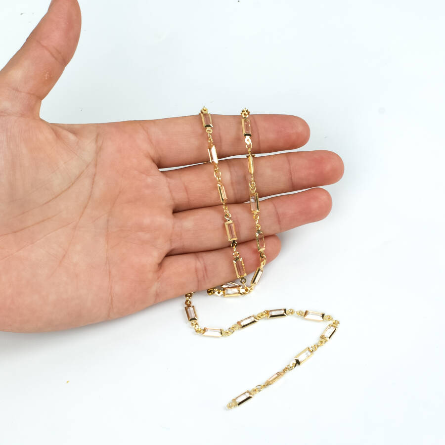 PEMBE TAŞLI ZİNCİR, PİRİNÇ MALZEME, ALTIN KAPLAMA