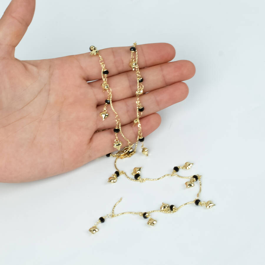 SİYAH TAŞLI SALLANTILI ZİNCİR, PİRİNÇ MALZEME, ALTIN KAPLAMA