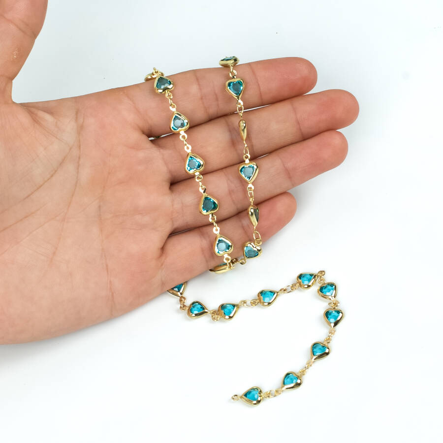 MAVİ TAŞLI ZİNCİR, PİRİNÇ MALZEME, ALTIN KAPLAMA