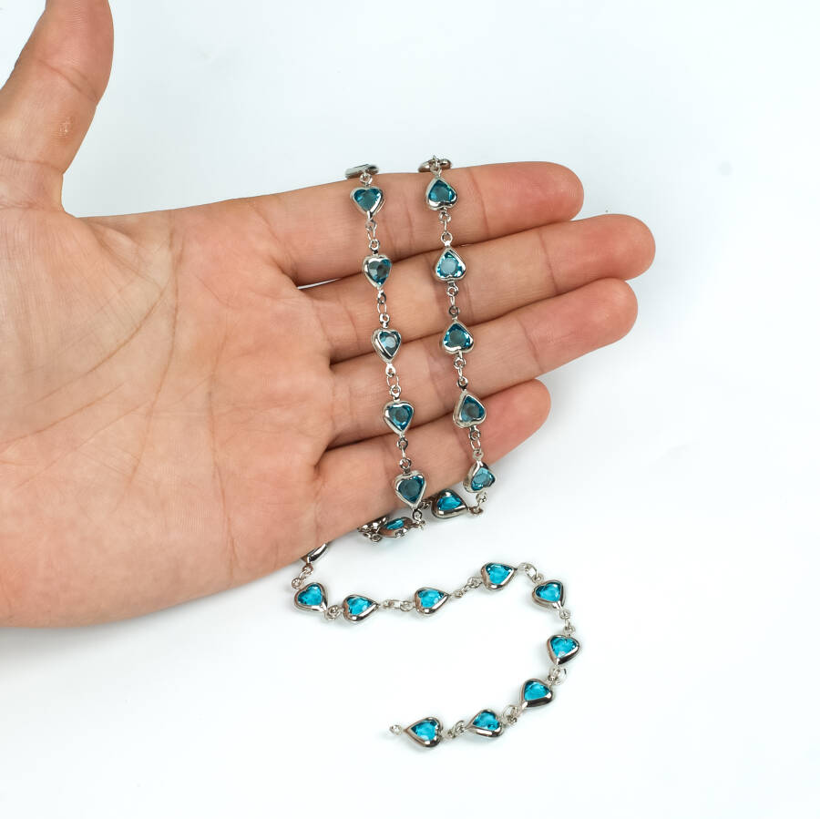 MAVİ TAŞLI ZİNCİR, PİRİNÇ MALZEME, RODYUM KAPLAMA
