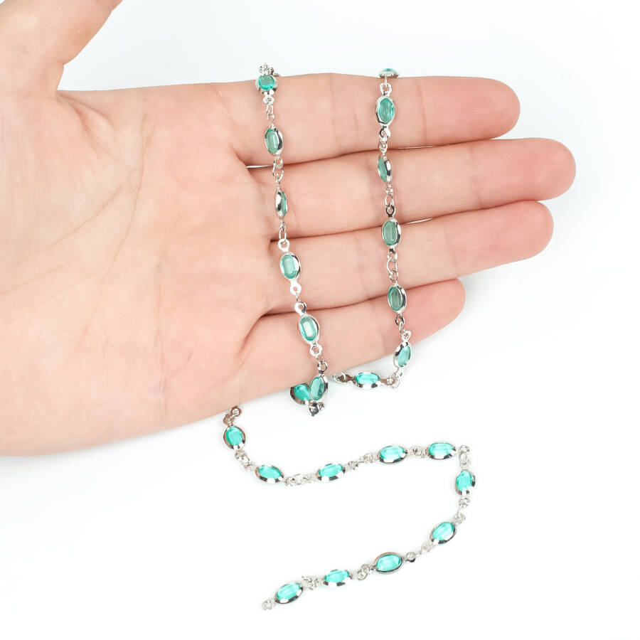 TURKUAZ TAŞLI ZİNCİR, PİRİNÇ MALZEME, RODYUM KAPLAMA