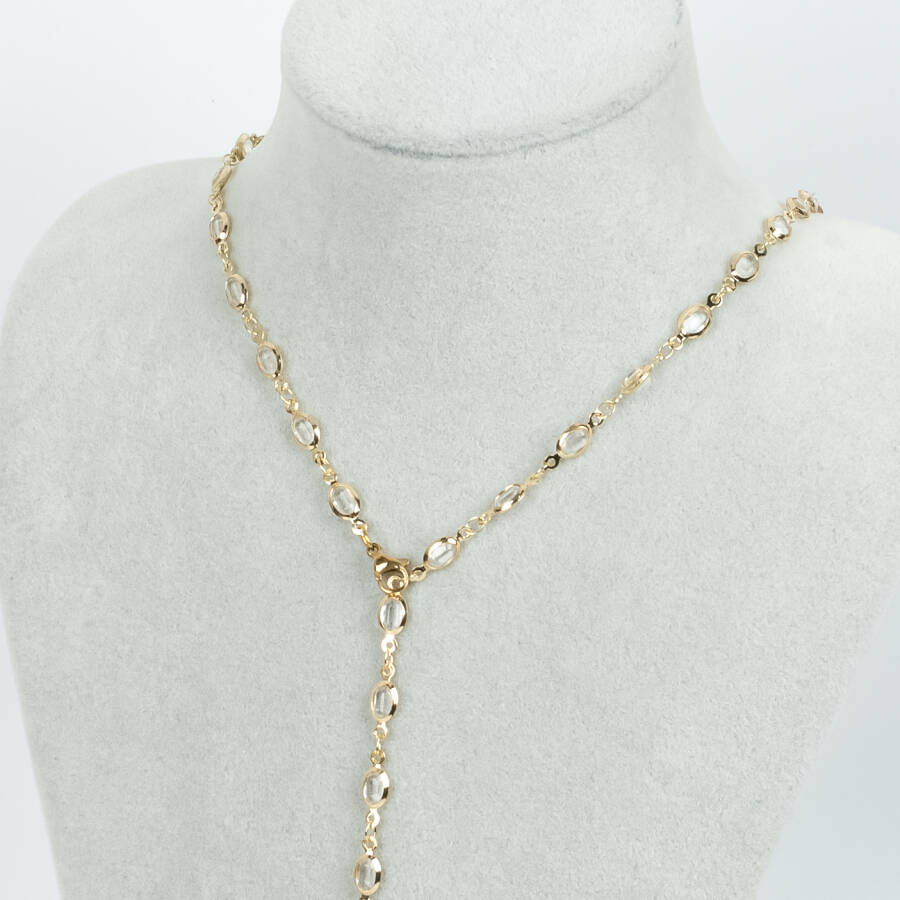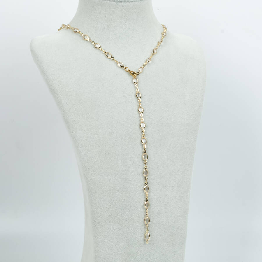 Y KOLYE, BEYAZ TAŞLI OVAL MODEL ZİNCİR, PİRİNÇ MALZEME, ALTIN KAPLAMA