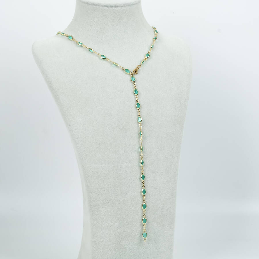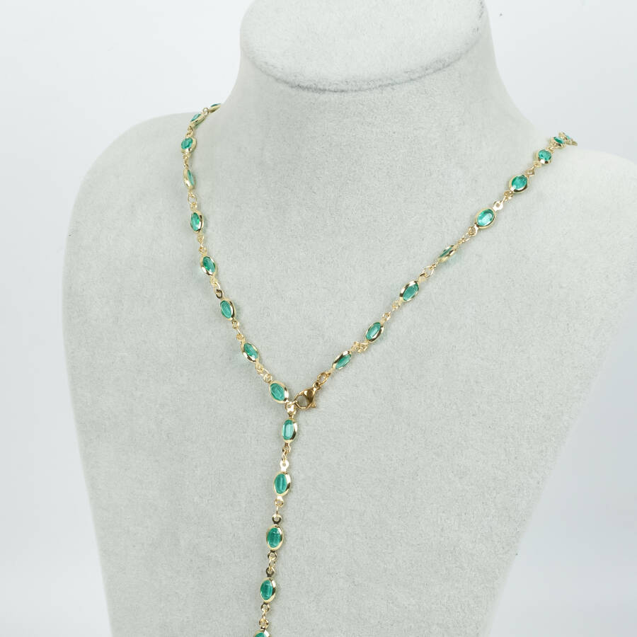 Y KOLYE, TURKUAZ TAŞLI OVAL MODEL ZİNCİR, PİRİNÇ MALZEME, ALTIN KAPLAMA