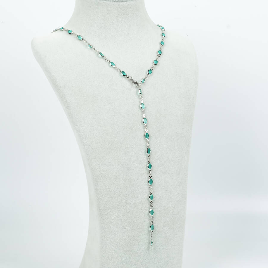 Y KOLYE, TURKUAZ TAŞLI OVAL MODEL ZİNCİR, PİRİNÇ MALZEME, RODYUM KAPLAMA