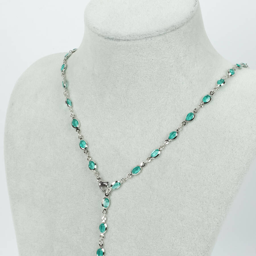 Y KOLYE, BEYAZ TAŞLI SALLANTILI MODEL ZİNCİR, PİRİNÇ MALZEME, RODYUM KAPLAMA